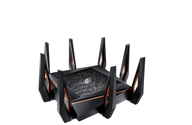 The TP-Link Archer AX6000 is yet another gaming router that supports WiFi 6 and comes with a reasonable price tag. It promises a maximum wireless speed of 5,952 Mbps: 1,148 Mbps at 2.4 GHz, and 4,804 Mbps at 5 GHz. The router has eight high-gain external antennas that keep your signal strong in any part of your house, and its BSS color technology gets rid of any signal interference from other homes around you. It also has Range Boost and Beamforming features that give your network wider coverage. You can connect more devices to your WiFi network because OFDMA technology enhances your average throughput. The AX6000 guarantees a stable performance with no latency thanks to its two co-processors and 1.8 GHz Quad-Core CPU. In terms of connectivity, the router has eight Gigabit LAN ports, one 2.5 Gbps WAN port, and USB Type-A/C ports. Customers will get a lifetime subscription to TP-Link HomeCare for free upon purchase. It will give you parental controls, QoS, and next-level antivirus protection. The router is compatible with OneMesh, so you can easily create a Mesh network to have better coverage in your house. Setting up the router will be easy and quick through the Tether app.