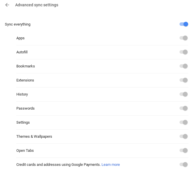 You can find “Sync Everything” under Settings > Sync Settings, as pictured above. Make sure that you have the “Sync Everything” slider turned on. It’ll look blue if it’s enabled, or gray if it’s disabled.