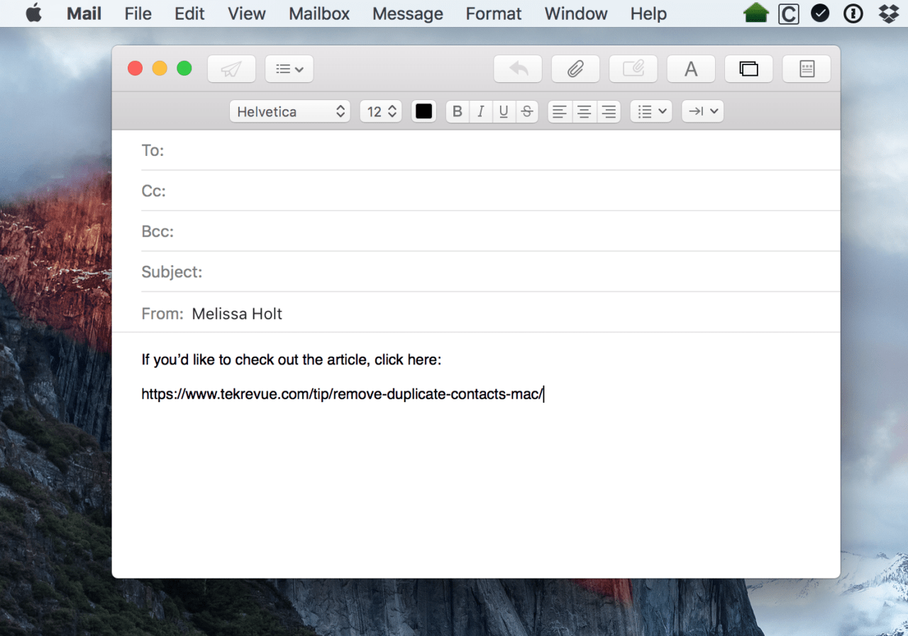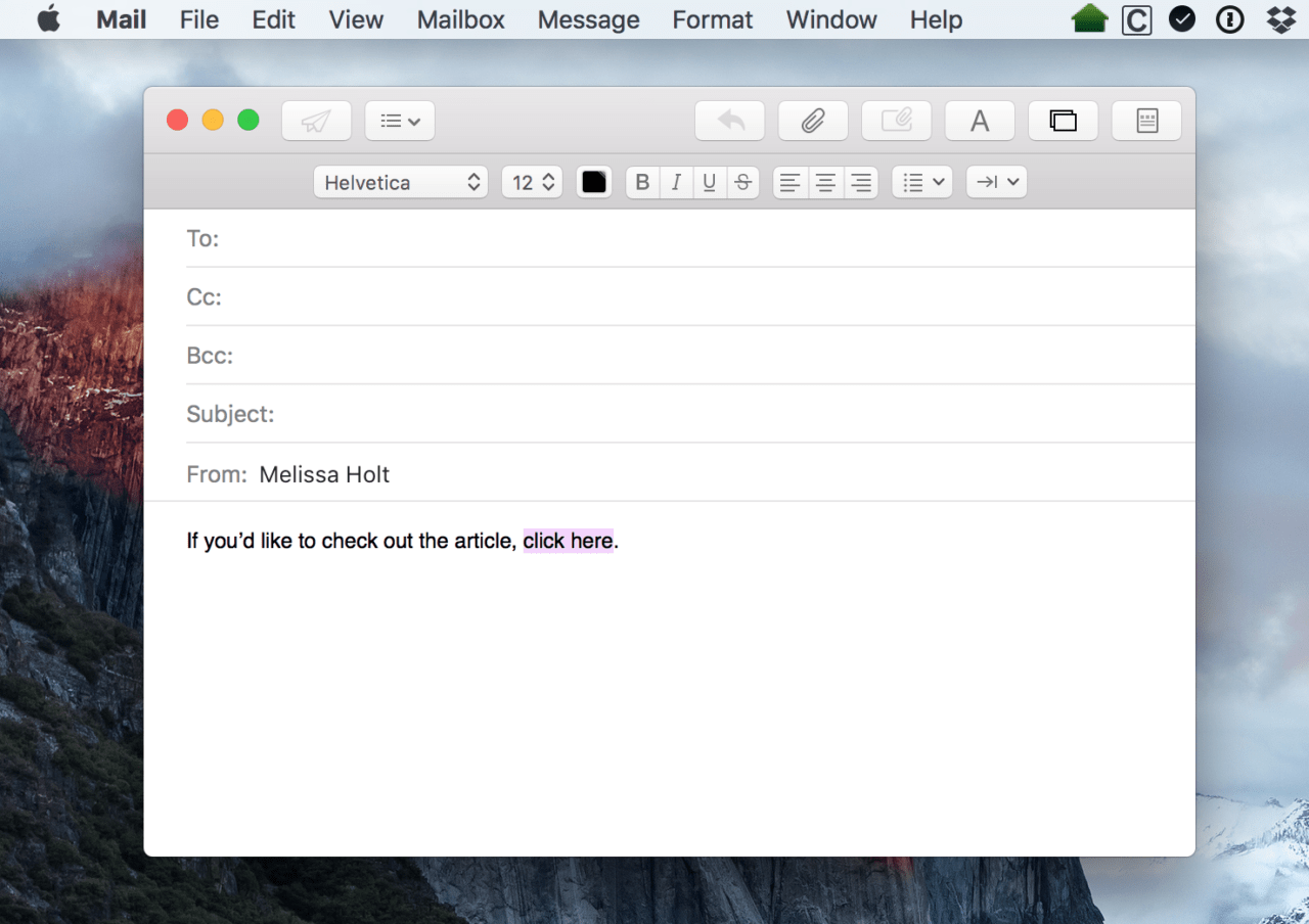 See that pasted link? It’s clunky. It’s ugly. I don’t like it just hanging out there. To make it better, first click and drag to select the text you’d like to add a link to (instead of just pasting one into the body of your message).