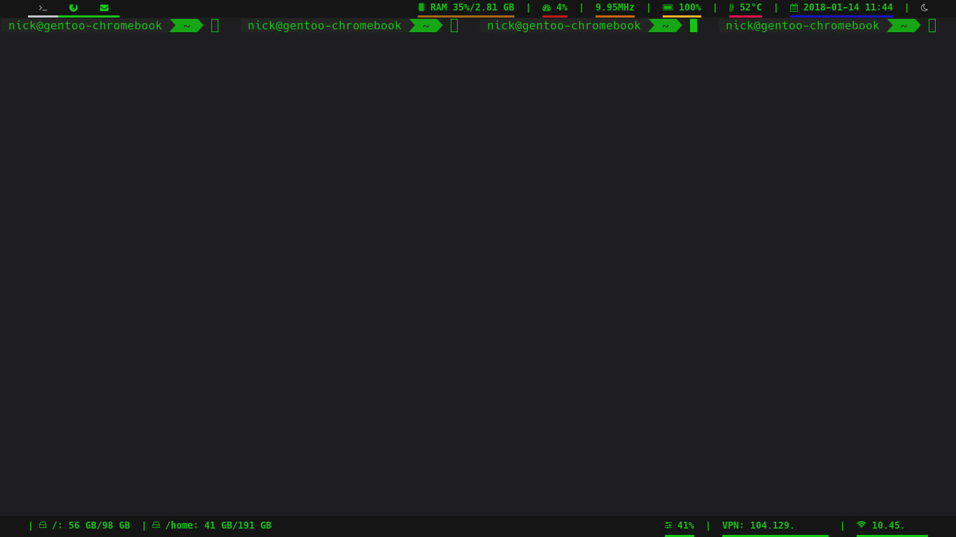 It’s also important to remember that tiling window managers are better on Linux than OSX and Windows, and OSX is much better than Windows. It has everything to do with their Unix lineage. If you decide to use a tiling window manager, expect most support and additional applications to focus on Linux.