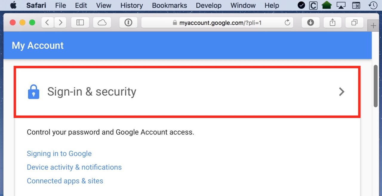 Then scroll down just a bit on the page that’ll appear until you see “Sign-in & security.” Click that section to move on.