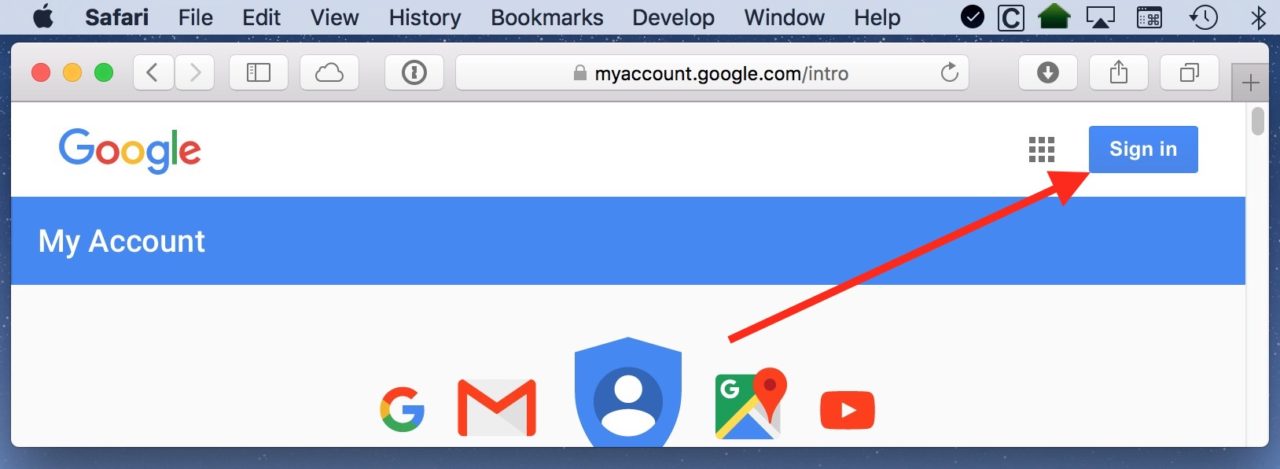 To get started, go to Google’s Accounts page and sign in using the big blue button in the upper-right corner of the window.